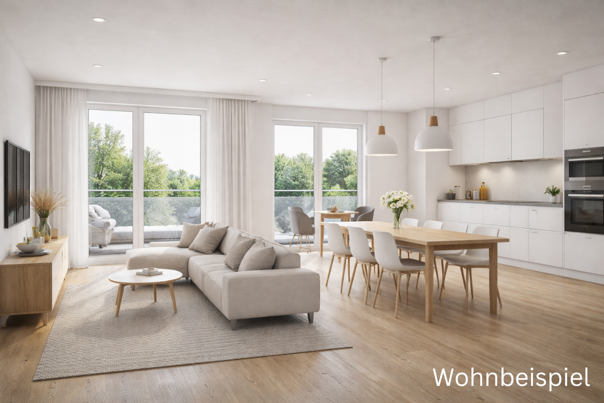 Die Erdgeschosswohnungen zeichnen sich insbesondere durch die großen Balkone aus. So ist diese Einheit bestens für Jung sowie Alt geeignet und bietet dank ihrer Aufteilung vielfältige Perspektiven für den Ein– oder Zweipersonenhaushalt.