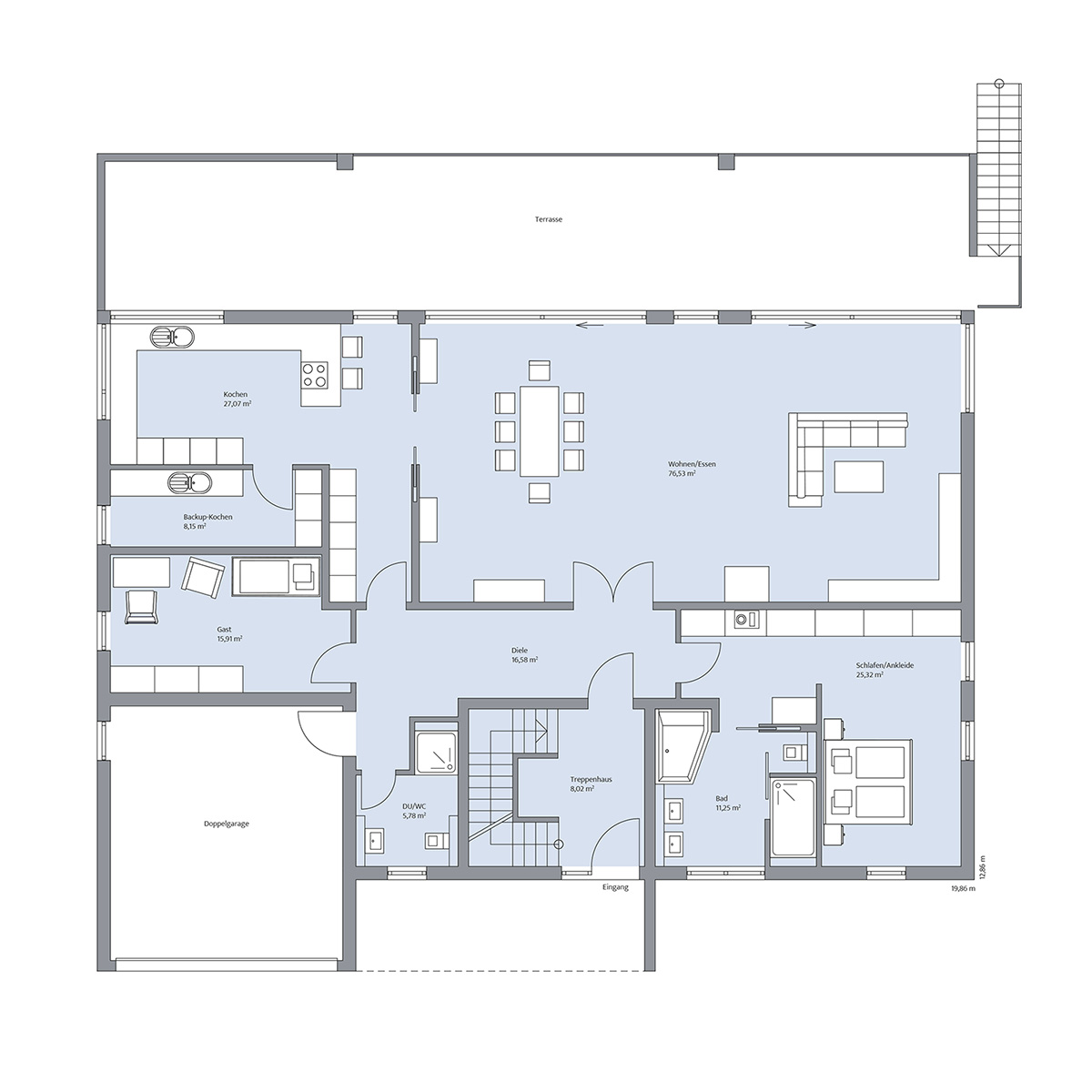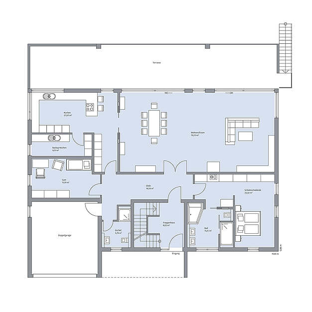 Haus Grahl repräsentiert modernen Luxus und elegante Wohnkultur als Dreifamilienhaus mit einer Gesamtwohnfläche von über 382 m². Jedes Detail des massiven Architektenhauses ist sorgfältig geplant, um Eleganz und Funktionalität zu maximieren. Als Effizienzhaus ausgestattet, verfügt es über eine Hybridwärmepumpe, Fußbodenheizung, Photovoltaikanlagen, Solarkollektoren und ein Smart-Home-System, das eine flexible Raumgestaltung ermöglicht. Das Erdgeschoss besticht durch einen beeindruckenden Wohn-/Ess-/Kochbereich mit Panoramafenstern, die einen nahtlosen Übergang zur großzügigen Terrasse und zum Balkon bieten. Im Dachgeschoss befinden sich zwei separate Einliegerwohnungen, jede mit eigener Dachterrasse, die einen privaten Außenbereich mit spektakulärem Ausblick und Raum für entspannte Stunden unter freiem Himmel bieten. Das Untergeschoss dient als Wellnessoase mit Sauna, einem Ruhebereich und einem voll ausgestatteten Fitnessstudio. Zudem gibt es ein professionelles Arbeitszimmer, mehrere Vorrats- und Technikräume sowie einen luxuriösen Weinkeller. Zwei integrierte Doppelgaragen bieten komfortable Stellplätze für Autos. Die Gartengestaltung mit Pool und Liegewiese vervollständigt das luxuriöse Ambiente des Hauses. Eine geflieste Betonmassivtreppe verbindet elegant die verschiedenen Ebenen und betont die hochwertige Innenarchitektur. Haus Grahl setzt neue Maßstäbe im Bereich des modernen Wohnens und bietet inspirierendes sowie entspannendes Wohnumfeld für anspruchsvolle Bewohner.