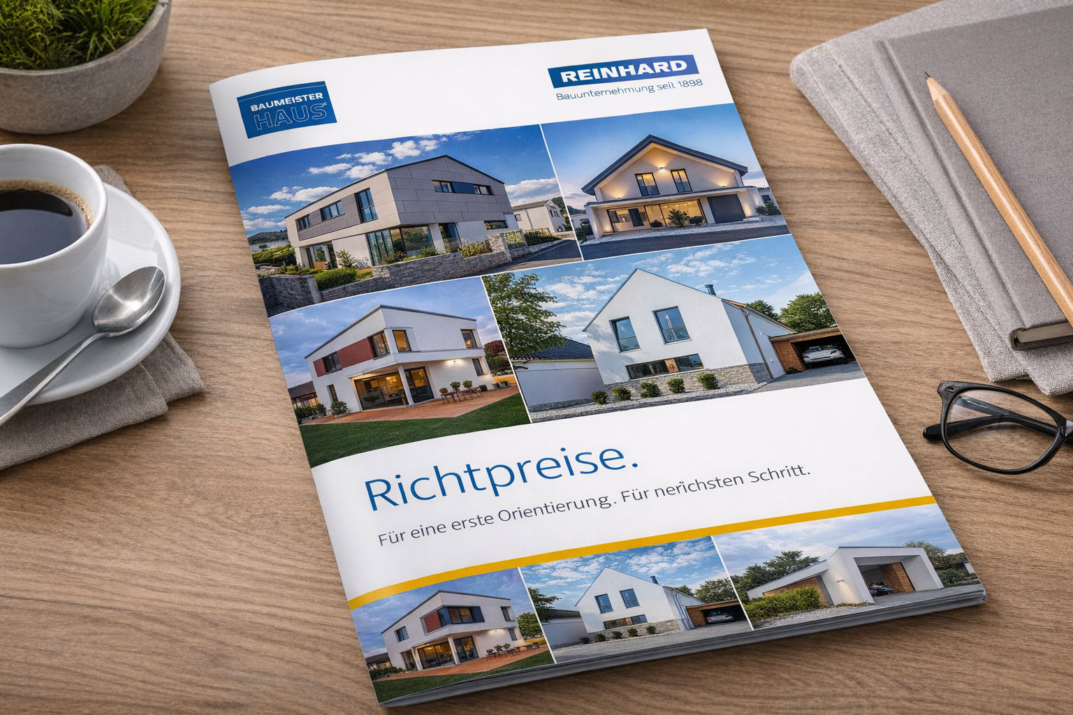 Ab jetzt ist unsere neue Richtpreisbroschüre bequem und einfach in unserer digitalen Mediathek verfügbar. Registrieren Sie sich kostenlos und erhalten Sie einen persönlichen Zugang zur digitalen Mediathek von Reinhard Bau. Darin haben Sie Zugriff auf verschiedene Infomaterialien, wie zum Beispiel unseren exklusiven Hauskatalog und jetzt auch – ganz neu – für eine erste Orientierung unsere Richtpreisbroschüre.
