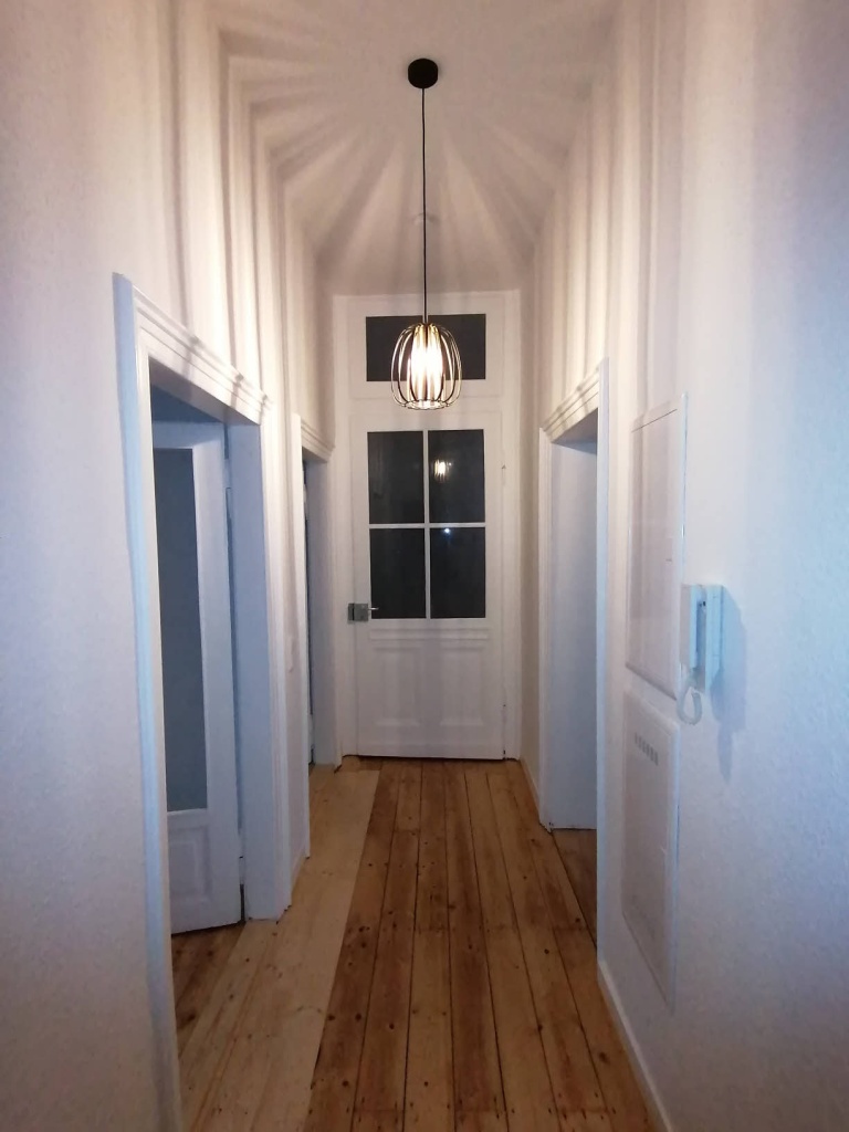 In einer historischen Villa wurde eine komplette Wohnung im Auftrag einer Familie modernisiert und für die Vermietung hochwertig instand gesetzt. Da das genaue Baujahr des Mehrfamilienhauses nicht mehr bekannt ist, lag der Fokus darauf, die alte Substanz behutsam zu sanieren und gleichzeitig modernen Wohnkomfort zu schaffen.